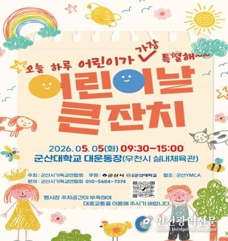 [인천광역신문] 최예준 기자 | 군산시는 5월 5일 어린이날을 맞아 지역 어린이와 가족들을 위한 다채로운 행사를 월명실내체육관과 군산대학교에서 동시에 개최한다.