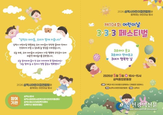 [인천광역신문] 최예준 기자 | 삼척시는 제104회 어린이날을 맞아 어린이와 가족이 함께 즐길 수 있는 행사들을 개최한다고 밝혔다.