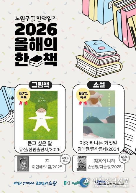 [인천광역신문] 최예준 기자 | 서울 노원구는 오는 5월부터 '노원구 한 책 읽기' 사업을 본격적으로 시작하며, “올해의 한 책”을 선정해 발표했다.