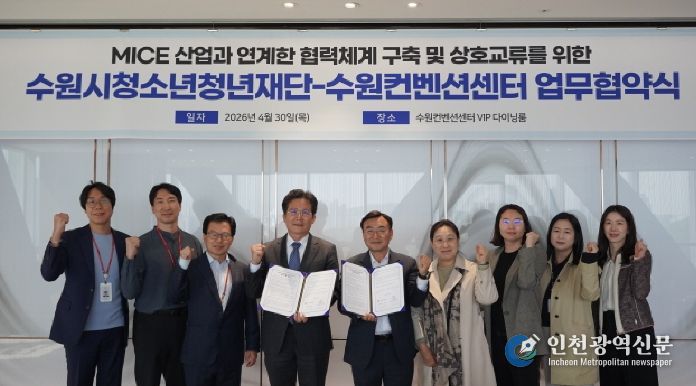 [인천광역신문] 최예준 기자 | 수원시청소년청년재단(이사장 최종진)과 수원컨벤션센터가 4월 30일 양 기관의 상호 협력과 교류 확대를 위한 업무협약을 체결했다.