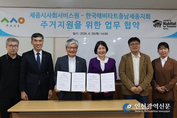 [인천광역신문] 최예준 기자 | 세종시사회서비스원은 4월 30일 한국해비타트 충남세종지회(이사장 윤학희)와 사회적 가치 실현을 위한 업무협약을 체결했다고 밝혔다.