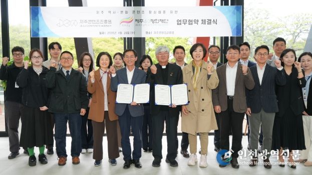 [인천광역신문] 최예준 기자 | 제주콘텐츠진흥원(원장 강민부)과 제주4‧3평화재단(이사장 임문철)은 4월 29일 제주 지역의 역사‧문화 문화를 기반으로 한 AI 콘텐츠 협력 강화를 위한 업무협약(MOU)를 체결했다.