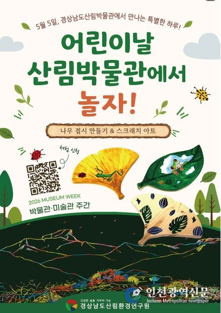 [인천광역신문] 최예준 기자 | 경상남도산림환경연구원(원장 윤경식)은 어린이날과 세계 박물관의 날(매년 5월 18일)을 기념해 경상남도산림박물관에서 체험·교육 프로그램을 운영한다고 밝혔다.