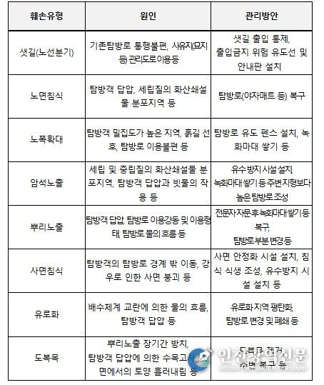 훼손 정도에 따라서는 5개 등급으로 분류해 유지관리, 즉시복구, 자연휴식년제 적용 등 단계별 대응 방안을 마련했다.