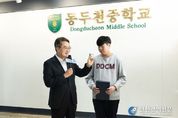 [인천광역신문] 관리자 기자 | 김동연 경기도지사가 16일 동두천중학교를 찾아 노점 할머니께 비상금을 건넨 선행으로 화제가 된 옥현일 군에게 표창을 수여했다. 김 지사는 학교 현관에서 학생회와 함께 ‘함께라서 더 빛나는 우리’ 생명존중 캠페인에 동참하고, 이어 1층 로비에서 옥현일 군에게 표창장을 전달했다. 옥현일 군은 지난 7월 폭염 속에서 노점상 할머니에게 비상금 3만 원을 건네고 콩 한 봉지를 받은 사연이 알려지며 주목받았다. SNS에 게시된 영상은 인근 공방 운영자가 촬영한 것으로, 현일 군이 남모르게 베푼 선행이 담겨 3일 만에 206만 조회수, ‘좋아요’ 약 7만, 댓글 2,500개 이상을 기록했다. 당시 현일 군은 “더운 날씨에 할머니가 물건을 빨리 팔고 쉬셨으면 좋겠다는 마음이었다”고 말해 많은 시민에게 감동을 줬다. 김동연 지사는 이날 인사말을 통해 “옥현일 군이 도운 할머니가 우리의 어머니, 할머니”라며 “수많은 옥현일 군이 동두천중에 있다고 본다. 그것이 사람 사는 세상”이라고 말했다. 이어 “여러분이 그런 따뜻한 마음을 갖길 바란다. 당장은 남을 위한 배려 같지만