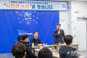 [인천광역신문] 관리자 기자 | 이상일 용인특례시장은 28일 오후 처인구청 대회의실에서 지역 17개 공동주택 입주자대표 26명과 ‘입주자대표회의 소통콘서트’를 열고 단지별 문제와 현안 등을 논의하며 올해 3개 구(區) 간담회를 마무리했다. 이 시장은 11월 12일 수지구를 시작으로, 19일 기흥구, 이날 처인구를 마지막으로 ‘공동주택 입주자대표회의 소통콘서트’를 마쳤다. 이 시장은 ‘입주자대표회의 소통콘서트’를 통해 수지구 26개 공동주택 입주자대표 39명, 기흥구 34개 공동주택 입주자대표 44명, 처인구 17개 공동주택 입주자대표 26명 등 총 77개 단지 입주민 109명을 만나 소통했다. ‘입주자대표회의 소통콘서트’를 통해 다룬 3개 지역별 안건은 수지구 45건, 기흥구 28건, 처인구 34건으로 총 107건에 달했다. 이중 수지구 18건(완료,진행중), 기흥구 10건(완료,진행중), 처인구 9건(완료,진행중) 총 37건(35%)의 사안을 단기간 내 처리하는 성과를 올렸다. 이 시장이 시민과 소통하며 받은 건의사항 3건 중 1건 이상은 해결한 셈이다. 지난해에 이어 올해도 공동주택