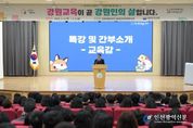 [인천광역신문] 관리자 기자 | 강원특별자치도교육청은 3월 5일부터 6일까지 이틀간 강원특별자치도교육청교육과학정보원 대강당에서 도내 교육전문직원 전체를 대상으로 ‘2026년 상반기 교육전문직원 워크숍’을 개최한다. 이번 워크숍은 ‘강원교육은 곧 강원인의 삶입니다!’라는 주제 아래, 2026년 강원교육의 주요 정책 방향을 공유하고 교육전문직원들의 정책 추진 역량을 강화하기 위해 마련됐다. 워크숍 첫날인 5일에는 △2026 강원교육 주요 정책 안내 △인천, 경기, 전남 등 타 시 · 도 교육청의 우수사례 발표 △인공지능(AI) 시대의 교육 리더십과 교육정책의 방향에 관한 주제 강연이 진행된다. 둘째 날인 6일에는 △장학사 · 연구사를 대상으로 한 교육전문직원의 역할과 자세에 대한 특강과 장학관 · 연구관을 대상으로 한 ‘교육활동 보호 동ː행’ 집담회 △보이는 이미지가 말해주는 신뢰라는 주제로 특강이 이루어진다. 도교육청은 이번 워크숍을 통해 교육전문직원 간의 네트워크를 공고히 하고, ‘미래를 여는 학교, 더 나은 강원교육’ 정책이 현장에 성공적으로 안착할 수 있도록 실천 기반을 조성한다는 방침이다. &