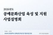 [인천광역신문] 관리자 기자 | 인천테크노파크(인천TP)는 오는 13일 인천기업경영지원센터(송도 미추홀타워 3층)에서 ‘2026년도 인천광역시 공예문화산업 육성 및 지원사업 설명회’를 개최한다고 밝혔다. 이번 설명회는 인천광역시가 주최하고 인천TP가 주관한다. 지역 공예기업 및 공예인 등을 대상으로 2026년도 공예산업 지원사업의 추진 방향과 세부 내용을 공유하기 위해 마련됐다. 설명회에서는 인천광역시 공예산업 육성 및 지원사업과 한국공예·디자인문화진흥원의 정부 공예지원사업을 연계해 소개하고 질의응답을 진행한다. 지자체와 중앙정부 지원사업을 한자리에서 종합적으로 이해할 수 있도록 각 기관 관계자가 참여해 사업을 안내할 예정이다. 행사는 3월 13일 오후 1시 30분부터 3시까지 인천기업경영지원센터 비즈니스 라운지에서 진행되며, 참가 신청은 포스터에 있는 QR코드를 통해 할 수 있다. 자세한 사항은 인천TP 디자인지원센터 담당자로 문의하면 된다. 인천TP는 이번 설명회를 통해 2026년도 공예산업 지원사업 참여를 확대하고, 지역 공예인의 네트워크 형성과 사업 이해도를 높일 계