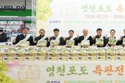 [인천광역신문] 박진 기자 | 영천시는 22일부터 28일까지 일주일간 대형 하나로마트 9개점에서 ‘설 명절맞이 영천포도 특판행사’를 진행한다고 밝혔다. 이번 행사는 설 명절을 맞아 영천포도를 홍보하기 위해 마련됐으며, 우수한 품질을 자랑하는 영천 샤인머스캣 1.5kg 상자 3만 박스(45톤)를 양재, 창동, 수원, 성남 등 대형 하나로마트 9개점에 공급한다. 특별 행사가 진행된 27일에는 최기문 시장, 김선태 시의장, 이상용 농협 영천시지부장, 성영근 영천농협조합장, 김천덕 금호농협조합장, 이상혁 고경농협조합장, 장호진 조합공동사업법인 대표 등이 하나로마트 양재점에 직접 방문해, 현장에서 판촉활동을 펼치며 소비자 홍보에 나섰다. 시 관계자는 “설 명절을 맞아 명품 영천 샤인머스캣을 공급하기 위해 당도가 높고 품질이 우수한 물량을 엄선해 준비했다”며, “설 명절, 가족들과 함께 달콤한 영천포도를 맛보며 즐기시길 바란다”고 말했다. 한편 영천시는 높은 당도와 뛰어난 맛을 가진 영천포도의 전국적인 판매와 홍보를 위해 하나로마트, 이마트, 롯데마트 등 대형 유통업체와 협업해 전국 대도시와 인근 소비지를 대