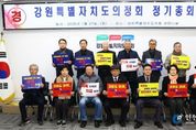 [인천광역신문] 박진 기자 | 강원특별자치도의정회는 1월 27일 11시.도의회 세미나실에서 2026년도 정기총회를 개최했다. 정기총회를 진행한 가운데 의정회원들이 강원특별법 3차 개정안 심사와 통과 촉구 결의문 낭독과 함께 피켓 퍼포먼즈로 강원특별자치도의 제도적 기반 강화를 위한 의지를 한데 모았다. 이번 총회에서는 지난해 추진한 사업 성과 및 예산결산 승인과 2026년도 주요사업계획 및 세입세출예산 의결과 의정회의 지속 가능한 발전과 회원 화합을 도모하기 위한 제15대 임원진 개선이 있었다. 강원특별자치도의정회 박주선 (朴柱善/홍천/1942.06.19.생)회장이 제15대 회장으로 유임(‘26.1.2~’30.1.19/임기4년)됐다. 박주선 회장은 홍천농고(졸), 강원대행정대학원(수료), 홍천군 문화공보실장, 사회과장, 의화사무과장, 내무과장,자치행정과장,기획실장,홍천농고동창회부회장,대한역도연맹공인심판, 국제역도 연맹공인심판, 홍천군궁도회장, 자유총연맹홍천군지부장, 강원도사회 복지협의회회장, 강원특별자치도문화원연합회장, 강원도의정회사무총장, 강원특별자치도의회 제5대의원과 6대의원을 역임하시고, 현재 홍천군