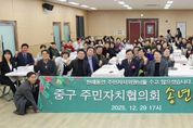 [인천광역신문] 박진 기자 | 인천 중구의회는 지난 29일 율목동 커뮤니티센터에서 열린 '2025년 중구 주민자치협의회 송년회'에 참석했다. 이날 행사에는 이종호 의장, 손은비 운영총무위원장, 윤효화 예산결산특별위원장이 참석해 한 해 동안 지역사회 발전을 위해 헌신한 주민자치회장단과 사무국장 등 각 동 주민자치회 관계자들에게 감사와 격려의 뜻을 전했다. 이종호 의장은 "올 한 해 주민 가까이에서 지역 현안 해결과 주민자치 활성화를 위해 애써주신 모든 분께 깊이 감사드린다"며 "중구의회도 주민자치회가 지역 공동체의 중심 역할을 할 수 있도록 제도적 지원을 아끼지 않겠다"고 밝혔다. 한편, 중구의회는 앞으로도 주민자치협의회와 협력해 주민 중심의 지역 자치 활성화를 위해 노력한다는 계획이다. [뉴스출처 : 인천시중구의회]