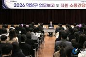 [인천광역신문] 박진 기자 | 고양특례시는 지난 26일 덕양구청 대회의실에서 ‘2026년 덕양구 업무보고 및 직원 소통간담회’를 개최했다. 업무보고에는 이동환 고양시장과 주시운 덕양구청장을 비롯해 구청 13개 과·21개 동행정복지센터의 부서장, 8·9급 저연차 공무원 등 100여 명의 직원이 참석했다. 2026년 업무보고는 주시운 덕양구청장과 부서장의 보고를 통해 민선8기 덕양구 핵심 성과와 2026년 업무 추진 방향을 간략히 공유하고, 직원들과의 자유로운 토론 시간을 확대해 현장의 목소리를 청취하는 데 중점을 뒀다. 이날 부서별 업무보고와 관련해 이동환 시장은 ▲덕양구를 대표하는 창릉천 유채꽃·코스모스 축제의 성공적 개최를 위한 주관 부서와 행신2동 행정복지센터의 적극적인 협조 ▲지적재조사 사업 등 시민 불편 해소를 위한 주요 사업의 속도감 있는 추진을 당부했다. 특히 20~30대 직원들과 격의 없이 소통하는 자유토론 시간이 눈길을 끌었다. CES 2026에서 고양시에 도입하고 싶다고 생각한 기술 분야, 전 세계적인 주목을 받은 ‘고양콘’에 대한 궁금증 등 다양한 주제로 활발한 의견 교환이 이어졌