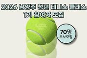 [인천광역신문] 박진 기자 | 남양주시는 27일부터 내달 2일까지 ‘2026 남양주 청년 테니스 클래스 1기’ 참여자를 모집한다고 밝혔다. 남양주 청년 테니스 클래스는 청년들의 건강한 여가 활동과 교류 활성화를 장려하기 위해 마련한 프로그램으로, 지난해 모집 당시 400명 이상이 지원하며 청년들에게 높은 관심을 받은 바 있다. 1기는 2월 7일부터 3월 28일까지 남양주체육문화센터 테니스장에서 매주 토요일 오후 7시부터 9시까지 총 8주간 운영된다. 참가자는 수준별 맞춤 강습을 통한 전문 강사의 지도를 받게 된다. 모집 대상은 관내 거주하는 만 19세부터 39세까지의 청년이며, 총 70명을 선발할 예정이다. 참여 신청은 홍보자료 내 큐알(QR)코드를 통해 가능하며, 신청 동기 및 참여 의지 등을 종합적으로 심사해 최종 참여자를 선정한다. 특히 올해 청년 테니스 클래스는 연간 3기로 확대 운영돼 총 210명의 청년이 참여할 수 있다. 또한 클래스가 없는 날에도 매주 토요일 오후 7시부터 10시까지 희망하는 청년들이 자유롭게 테니스를 즐길 수 있도록 테니스장을 무료로 개방한다. 시 관계자는
