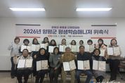 [인천광역신문] 박진 기자 | 양평군은 26일 평생학습센터에서 ‘2026년 양평군 평생학습매니저 위촉식’을 성황리에 개최했다. 군은 이번 위촉식에서 평생학습매니저 역량 강화 연수를 이수하고 활동 신청서를 통해 지속적인 참여 의사를 밝힌 인원을 대상으로, △학습 여행 운영 참여 실적 △회의 참여도 △관련 사업 기여도 등 활동 전반의 성실성을 평생학습매니저 평가표에 따라 종합적으로 심사해 최종 17명의 평생학습매니저를 공식 위촉했다. 위촉된 평생학습매니저들은 앞으로 1년간 지역 평생학습 활성화를 위해 주민의 학습 참여를 독려하고, 평생교육 프로그램 기획·운영 지원, 학습자 상담 및 만족도 조사 등 현장 중심의 역할을 수행하게 된다. 이날 위촉식은 평생교육 관계자와 위촉자들이 참석한 가운데 △위촉장 수여 △향후 활동 계획 공유 △평생학습 발전 과제 논의 등의 순서로 진행됐다. 위촉된 매니저들은 온행복센터(읍·면·동 평생학습센터)와 우리 동네 학습공간을 중심으로 지역 맞춤형 학습 콘텐츠 개발·운영, 학습자 요구 조사, 학습 지원 체계 구축 등에 참여할 예정이다. 전진선 양평군수는 “평생학습매니저는 주민의