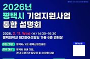 [인천광역신문] 박진 기자 | 평택시가 평택산업진흥원과 함께 오는 2월 11일 평택대학교 제2피어선빌딩 6층 대강당에서 ‘평택 중소기업 지원사업 설명회’를 개최한다. 시에 따르면 이번 지원사업 설명회에서는 참석 기업을 대상으로 ▲자금지원 ▲사업화 및 기술 고도화 ▲수출판로개척 및 마케팅 지원 ▲근로 환경개선 등 다양한 분야의 중소기업 지원사업 및 일자리 등 상담 부스도 마련하여 종합적으로 안내할 예정이다. 이번 설명회에는 평택시를 비롯해 진흥원, 경기지방중소벤처기업청, 경기도경제과학진흥원, 경기신용보증재단, 중소기업진흥회 등 21개 지원 관계기관이 참여할 예정이다. 또한 설명회에 참석한 기업인들에게는 각종 지원사업 정보를 한눈에 확인할 수 있도록 중소기업 지원사업 안내 책자를 배부하는 한편, 참석하지 못한 기업을 위해 자료를 시 및 진흥원 누리집에도 게시한다. 특히 반도체산업 혁신 네트워크 조성, 제조 기업 인공지능 전환(AX) 지원 등 교육 사업을 통한 인력양성과 산․학․연․관 협력체계 구축과 더불어, 최근 화제가 되는 인공지능(AI)산업 관련 수요 기반 실증 지원사업을 통한 혁신 역량 강화 및 산업 경쟁력