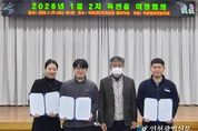 [인천광역신문] 박진 기자 | 옥천읍 이장협의회(회장 이윤우)는 1월 27일 열린 이장회의에서 총무팀 임지훈 주무관, 민원팀 조성혁 주무관, 산업팀 조영준 주무관을 우수공무원으로 선정했다. 선정된 공무원들은 각자의 업무 분야에서 책임감 있는 자세와 적극적인 현장 행정을 통해 주민 불편 해소와 행정 신뢰도 향상에 기여한 점을 높이 평가받았다. 이윤우 회장은 “세 분 모두 주민과 가장 가까운 현장에서 묵묵히 헌신해 온 공직자들”이라며 “이번 선정이 현장에서 애쓰는 공직자들에게 작은 격려가 되길 바란다”고 말했다. 수상자들은 “주민과 이장님들의 신뢰와 응원에 감사드리며, 앞으로도 주민에게 도움이 되는 행정을 펼치기 위해 최선을 다하겠다”고 소감을 전했다. [뉴스출처 : 충청북도 옥천군]