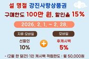 [인천광역신문] 박진 기자 | 강진군이 설 명절을 맞아 2월 한 달간 강진사랑상품권 구매한도와 할인율을 상향 조정한다. 지원 기간은 오는 2월 1일부터 2월 28일까지이며, 대상은 모바일(착) 강진사랑상품권이다. 이번 상향 조정은 설 명절 기간 소비 진작과 지역경제를 활성화하기 위해 조정된 것으로 모바일 (착) 상품권의 구매한도를 기존 70만 원에서 100만 원으로 상향하고, 할인율은 기존 선할인 10%에서 후캐시백 5%를 추가 지급하는 총 15%로 상향했다. 다만, 지류 상품권은 부정유통 방지를 위해 구매한도 70만 원, 선할인 10%를 기존대로 유지한다. 이번 강진사랑상품권 특별 상향 운영은 2025년 지역사랑상품권 발행 우수 지자체로 선정되어 특별교부세로 받은 2억 원으로 추진된다. 이는 강진군이 지역사랑상품권의 안정적인 발행과 건전한 유통 관리, 국비 연계 집행을 적극 추진해 온 성과로, 지역경제 활성화 정책의 우수성을 대외적으로 인정받은 결과다. 강진군은 7년 연속 강진사랑상품권 할인율을 연중 10%로 유지하며 지역경제 활성화에 앞장서 왔으며, 2026년에도 상품권