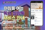 [인천광역신문] 박진 기자 | 홍천군립도서관은 2026년 2월부터 군민의 독서 정보 접근성을 높이기 위해 매주 1회 우수 도서를 선별해 요약본을 제공하는 ‘아침을 여는 독서 알림톡’ 서비스를 운영한다. ‘아침을 여는 독서 알림톡’은 홍천군립도서관 정회원 400명을 대상으로 매주 화요일에 운영하는 대면하지 않는 독서 지원 서비스다. 매주 베스트 셀러, 오래 사랑받는 도서, 신간 도서, 세계 흐름 도서 등으로 구성한 도서 6권의 요약본을 휴대전화 알림톡(카카오 알림톡)으로 제공한다. 바쁜 일상에서도 짧은 시간에 책의 핵심을 읽을 수 있도록 내용을 간추려 전달하는 것이 특징이다. 서비스 관련 자세한 내용은 홍천 군립도서관 누리집(연봉, 서석, 남면, 내면, 별빛나루, 홍천 어린이도서관)에서 확인할 수 있다. 기타 문의는 홍천 군립도서관으로 하면 된다. 이성희 교육체육과장은 “독서 알림톡 서비스가 홍천 군민이 일상에서 자연스럽게 책과 만나는 계기가 되길 바란다”라며, “앞으로도 생활 속 독서 문화 확산을 위해 다양한 독서 지원사업을 지속적으로 운영해 나가겠다”라고 말했다. [뉴