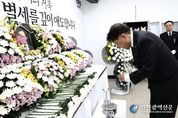[인천광역신문] 박진 기자 | 김영환 충북도지사가 27일 청주시 청원구 더불어민주당 충북도당사 대회의실에 마련된 고(故) 이해찬 전 국무총리 합동분향소를 찾아 조문했다. 김 지사는 특히 고인을 ‘선배님’으로 지칭하며, “대한민국 민주주의를 위해 한평생을 헌신하신 선배님께 깊은 조의를 표한다”며 깊은 애도의 뜻을 표했다. [뉴스출처 : 충청북도]