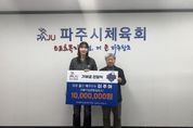 [인천광역신문] 박진 기자 | 파주가 낳은 배구 인기인(스타)이자 아이비케이(IBK)기업은행 알토스 소속 이주아 선수가 고향 후배들을 위해 1천만 원을 기부하며 남다른 고향 사랑을 전했다. 파주시체육회는 지난 23일 체육회 회의실에서 이주아 선수와 부모, 파주시배구협회 관계자(박희수 회장, 황우연 부회장, 전찬혁 사무국장) 등이 참석한 가운데 기부금 전달식을 개최했다. 이번에 전달된 기부금은 파주 지역 생활체육 활성화를 비롯해 유소년 및 학생 선수 육성, 체육 기반 시설 개선 등 파주시 체육 발전을 위한 다양한 사업에 사용될 예정이다. 이주아 선수는 “고향 파주에서 많은 응원과 도움을 받으며 운동을 시작했고, 덕분에 지금의 자리까지 올 수 있었다”라며, “지역 체육 발전과 후배 선수들에게 작게나마 힘이 되고자 기부를 결심하게 됐다”라고 소감을 밝혔다. 이어 “앞으로도 파주 체육이 더욱 활성화돼 꿈을 키우는 후배들이 더 나은 환경에서 운동할 수 있기를 바란다”라고 덧붙였다. 김종훈 파주시체육회장은 “파주 출신 국가대표 선수로 훌륭하게 성장한 이주아 선수가 고향을 잊지 않고 나눔을 실천해 준 데 대해