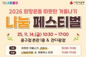 [인천광역신문] 기자 | 서울 중구가 올겨울에도 소외된 이웃들에게 온정을 전한다. 오는 14일 중구청 잔디광장에서 ‘2026 희망온돌 따뜻한 겨울나기’선포식과 나눔바자회를 시작으로 3개월간 나눔 활동을 펼칠 예정이다. ‘2026 희망온돌 따뜻한 겨울나기’캠페인은 중구 주민과 단체, 기업이 함께 참여해 매년 지역사회의 어려운 이웃에게 따뜻한 손길을 전하는 대표적인 겨울철 나눔 캠페인으로 자리 잡았다. 이번 선포식은 오전 10시 30분부터 중구청 잔디광장에서 열린다. 지난 10월 ‘우리는 나눔 키즈’ 행사에 참여한 어린이들이 정성껏 만든 나눔 저금통을 기부하며 첫 나눔 주자로 나선다. 이어 각 동을 대표하는 15명의 나눔 홍보대사들이 함께 무대에 올라 나눔문화 확산을 위한 다짐을 전할 예정이다. 선포식과 함께 열리는 나눔바자회는 오전 11시부터 중구청 본관 1층 로비와 잔디광장에서 다채롭게 펼쳐진다. 지역 내 많은 기업과 전통시장 상인회, 의류업체들이 참여해 풍성한 나눔의 장을 마련했다. 나눔바자회 수익금은 전액 홀몸 어르신, 아동·청소년, 장애인 등 도움이 필요한 이웃들에게 전달된다. 먼저, 구청