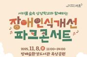 [인천광역신문] 기자 | 서울 서초구는 오는 8일 오전 11시부터 오후 2시까지 방배숲환경도서관 옥상공원에서 서리풀 숲속 상상학교와 함께하는 『장애인식개선 숲속 파크콘서트』를 개최한다고 밝혔다. 이번 파크콘서트는 서리풀 숲속 상상학교 운영 2년 차를 맞아 지역주민과 장애인이 함께 어울리며 소통하는 자리를 마련하고, 장애인에 대한 올바른 인식과 사회통합의 가치를 확산하기 위해 마련됐다. 행사는 ▲서초 한우리오케스트라, 서울시 별별하모니아 오케스트라, 규니브라더스 등 발달장애인 연주자가 참여하는 공연과 토크콘서트 ▲숲·환경·장애인식개선·책을 주제로 한 체험부스 ▲스탬프투어 등 다채로운 프로그램으로 구성된다. 특히 체험부스에서는 디지털 AR 숲체험, 친환경 샴푸바 만들기, 바퀴달린 가드닝, 늘봄 커피 핸드드립 체험, 독서 및 휴식 공간 등이 운영되어 다양한 체험 활동을 통해 참여자들에게 장애에 대한 올바른 인식을 형성할 수 있는 기회를 제공한다는 계획이다. 지난해 4월 개관한 서리풀 숲속 상상학교는 발달장애 청소년을 위한 돌봄과 다양한 체험 프로그램을 운영하는 공간으로, 그간 4,500명이 넘는 장애인과 가족, 지