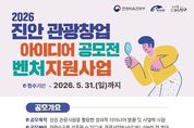 [인천광역신문] 최예준 기자 | (사)진안군관광협의회(이사장 이재동)가 지역 관광자원을 활용한 창의적인 아이디어를 발굴하고 실질적인 사업화를 지원하기 위해 ‘2026 진안 관광창업 아이디어 공모전’을 개최한다. 이번 공모전은 관광수요 창출과 수익화가 가능한 전 분야(관광상품·서비스, 체험 콘텐츠, 관광 시설 및 기술 등)를 대상으로 하며, 오는 5월 31일까지 접수를 진행한다. 공모는 ‘아이디어 부문’과 ‘창업 부문’ 2개 분야로 나뉘어 진행된다. ▲‘아이디어 부문’은 진안군 관광 활성화에 참신한 제안을 하고 싶은 누구나 참여할 수 있으며, ▲‘창업 부문’은 예비 창업자(선정 후 14일 이내 진안군 소재 등록 필수) 또는 진안군 소재 사업자 등록 만 3년 이내의 초기 창업자가 대상이다. 두 부문 간 중복 참여도 가능하다. 특히, 이번 공모전은 단순한 아이디어 발굴에 그치지 않고 선정된 팀에게 상금과 함께 5개월간의 밀착 벤처 지원 혜택을 제공하는 것이 특징이다. 맞춤형 컨설팅과 마케팅 지원을 통해 제안된 아이디어가 성공적인 지역 기반 비즈니스로 안착할 수 있도록 도울 것으로 전망된다. (사)진안군관