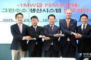 [인천광역신문] 관리자 기자 | 부안군은 29일 부안군청에서 전북특별자치도, 현대자동차, 현대건설, 전북테크노파크와 함께 부안군 수소도시 조성사업의 일환으로 1MW급 PEM(고분자 전해질막) 수전해 그린수소 생산시스템 구축을 위한 업무 협약(MOU)을 체결했다고 밝혔다. 이날 협약식에는 권익현 부안군수를 비롯해 배주현 전북자치도 청정에너지수소과장, 팔코 베르그 현대자동차 상무, 서유택 현대건설 상무, 이규택 전북테크노파크 원장 등 주요 관계자들이 참석했다. 이번 협약은 국내 독자 기술로 개발된 1MW급 PEM 수전해 시스템을 부안군 수소도시 조성사업의 핵심 인프라로 구축하기 위한 것이다. 이 시스템은 향후 부안군 내 재생에너지를 활용해 청정 수소를 생산하고 이를 지역 내 수소모빌리티 및 산업단지에 공급하는 RE100 기반의 분산형 수소생산 모델로 운영될 예정이다. 이를 통해 부안군은 수전해 그린수소 수소산업의 중심지이자 국내 최초 지자체-민간 공동 기술 실증형 수소도시로서의 위상을 확보하게 된다. 권익현 군수는 “이번 협약은 국내 독자 기술을 기반으로 부안군이 수소를 직접 생산·활용하는