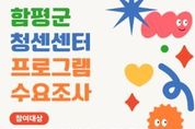 [인천광역신문] 박진 기자 | 전남 함평군이 청년들의 실질적인 수요를 반영한 청년센터 프로그램 운영을 위해 사전 수요조사에 나선다. 군은 “이달 8일부터 18일까지 11일간 지역 청년을 대상으로 ‘2026년 청년센터 프로그램’ 수요조사를 실시한다”고 7일 밝혔다. 수요조사는 총 11개 문항으로 구성된 설문을 통해 청년층이 실제 원하는 교육이나 취미·교양 프로그램을 파악한다. 결과는 올해 상반기 청년센터 프로그램 운영 기초자료로 활용할 예정이다. 함평군에 거주하는 19세부터 49세 이하의 청년은 누구나 각 읍·면사무소 방문 또는 온라인으로 참여할 수 있다. 군 관계자는 “이번 설문조사는 청년들의 실제 삶에 도움이 되는 프로그램 운영을 위한 것”이라며 “질 높은 프로그램 운영을 위해 많은 참여를 바란다”고 전했다. 한편, 지난해 12월 정식 개소한 함평군 청년센터는 나비어울림센터 3층(함평읍 중앙길 164)에 있으며, 내부는 교육실과 열람실, 컴퓨터 교육실과 공유 카페 등으로 조성됐다. [뉴스출처 : 전라남도함평군]
