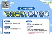 [인천광역신문] 관리자 기자 | 부평구가 3월 3일부터 4월 3일까지 한 달간 ‘2026년 여름편 공감글판’ 문안을 공모한다. 공모 내용은 청량한 여름 계절과 잘 어울리며, 희망과 공감을 나눌 수 있는 ‘30자 이내의 창작 글귀’다. 인천 시민이거나 인천 소재 직장인, 학생이라면 누구나 참여할 수 있다. 공감글판 문안을 제출하려는 주민은 부평구청 누리집 ‘공감글판’ 게시판에서 응모하거나 구청 홍보담당관으로 우편 발송, 또는 방문 제출하면 된다. 1인당 3편까지 제출할 수 있다. 구는 접수된 문안을 대상으로 공감글판선정단의 심사를 통해 총 5편의 당선작을 선정할 예정이다. 당선자에게는 최우수(1명) 30만 원, 우수(2명) 각 20만 원, 장려(2명) 각 10만 원 상당의 e음 카드 또는 온누리상품권을 지급한다. 지난 봄편 공감글판 당선작에는 최우수상 조인숙 씨의 ‘봄이라는 건 / 연두빛 어린 새싹이 / 기세좋게 기지개를 켜는 거야’를 비롯해 우수작으로 최동호 씨의 ‘네가 보고 싶어 / 이 봄 / 꽃들이 피어나네’와 안화균씨의 ‘봄바람 숲을 흔들어 / 꽃향기 피우니, / 마음도 춤추는 봄이다’ 등이