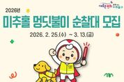 [인천광역신문] 관리자 기자 | 미추홀구종합자원봉사센터는 3월 13일까지 ‘2026년 미추홀구 멍딧불이 순찰대’로 활동할 반려 가족을 모집한다고 밝혔다. 반려견 순찰대는 반려견과 함께 산책하며 지역 내 위험 요소를 발견하고 관계 기관에 신고하는 등 생활 속 안전 지킴이로, 올바른 반려문화 확산과 지역 안전망을 구축할 계획이다. 이번 모집을 통해 총 30가정(60명 이내)을 선발하며, 미추홀구에 거주하고 정기적인 순찰 활동이 가능한 반려견 가족이면 신청할 수 있다. 선발된 반려견과 반려인은 발대식 이후 정식 순찰대로 활동하게 되며, 주 1회 이상 순찰을 진행하고, 연 1회 반려견 문화축제 ‘미추홀 댕댕 페스타’를 통해 반려인 간의 교류를 활성화하고, 성숙한 반려문화를 조성해 나갈 계획이다. 센터 관계자는 “멍딧불이 순찰대는 반려견과 함께하는 일상 속 산책이 곧 지역을 지키는 자원봉사 활동으로 이어지는 의미 있는 사업”이라며 “많은 반려 가족이 참여해 안전하고 따뜻한 미추홀구를 함께 만들어가길 바란다.”고 전했다. 자세한 사항은 미추홀구종합자원봉사센터 홈페이지에서 확인할 수 있다. [뉴