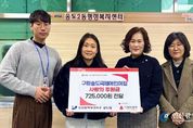 [인천광역신문] 관리자 기자 | 연수구 송도2동 지역사회보장협의체(위원장 정미숙·전미선)는 지난 6일 구립송도국제어린이집(원장 이은경)으로부터 저소득층을 위한 ‘사랑의 후원금’ 72만 5천 원을 인천사회복지공동모금회를 통해 전달받았다. 구립송도국제어린이집은 해마다 바자회 수익금과 교직원 및 학부모들이 모은 성금을 후원해 왔으며, 이번 후원금은 지역 내 복지 사각지대에 놓인 소외계층을 지원하고 다양한 복지사업을 추진하는 곳에 사용될 예정이다. 이은경 원장은 “이번 나눔을 통해 아이들이 이웃을 돌아보는 소중한 마음을 느끼길 바라며, 앞으로도 지역사회와 함께 호흡하며 이웃사랑을 실천하는 어린이집이 되도록 노력하겠다.”라고 덧붙였다. 전미선 송도2동장은 “뜻깊은 나눔을 실천해 주신 구립송도국제어린이집에 감사하다.”라며 “전달받은 성금은 도움이 꼭 필요한 곳에 소중하게 사용하며 더 살기 좋고 따뜻한 복지 마을 송도2동 만들기에 최선을 다하겠다.”라고 강조했다. [뉴스출처 : 인천시 연수구]