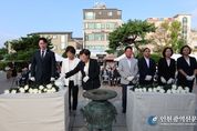 [인천광역신문] 최예준 기자 | 인천 계양구의회는 지난 15일 제80주년 광복절을 맞아 황어장터 3·1만세운동 기념탑을 찾아 순국선열의 숭고한 희생을 기리고, 독립운동 정신을 되새기는 뜻깊은 시간을 가졌다. 이번 참배는 신정숙 의장을 비롯한 계양구의회 의원이 함께한 가운데, 순국선열들의 숭고한 애국정신과 희생정신을 기리며 대한민국의 자유와 평화를 위해 헌신한 독립운동가들의 넋을 위로하고자 마련됐다. 행사는 국민의례를 시작으로 헌화와 분향, 광복절 노래 제창, 만세삼창 순으로 엄숙하고 경건하게 진행됐으며, 의원들은 각자의 마음을 모아 기념탑에 헌화하고, 나라의 독립을 위해 희생한 선조들의 정신을 되새기며 참배의 뜻을 다졌다. 이날 참석한 의원들은 “선열들의 희생과 헌신으로 오늘의 자유롭고 평화로운 대한민국이 존재할 수 있었다”라며, “그 숭고한 뜻을 되새기며, 계양의 미래와 발전을 위해 후손으로서 더욱 책임감 있는 자세로 의정활동에 최선을 다하겠다”고 밝혔다. 이어 “역사를 기억하고 계승하는 것은 현재를 살아가는 우리 모두의 책무”라며, “계양구의회는 애국선열의 뜻을 받들어 정의롭고 공정한 지역사회,