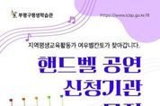 [인천광역신문] 관리자 기자 | 부평구평생학습관은 지역사회 문화복지 확대와 평생교육 활성화를 위해 ‘핸드벨 파견공연’ 신청기관을 4월 6일부터 23일까지 모집한다. 이번 사업은 지역 내 평생교육기관 및 복지시설 등을 대상으로 운영되며, 핸드벨 연주를 통해 어르신과 지역 주민에게 정서적 안정과 문화예술을 접할 수 있는 기회를 제공하고자 마련됐다. 지역평생교육활동가로 양성된 핸드벨 지도사 12명이 공연에 참여한다. 이들은 따뜻한 선율의 연주를 선사하며, 각 기관 행사와 프로그램에 활력을 더할 것으로 기대된다. 파견공연은 4월부터 11월까지 운영되며, 참여 기관은 사전 일정 협의를 통해 무료로 지원받을 수 있다. 핸드벨 파견공연 신청은 부평구평생학습관 누리집 공지사항을 통해 신청할 수 있으며, 포스터 내 QR코드를 통해 자세한 사항을 확인할 수 있다. 기타 문의는 평생학습관으로 하면 된다. 부평구 관계자는 “이번 사업을 통해 지역 내 다양한 기관에 문화예술 공연을 보다 쉽게 제공할 수 있을 것으로 기대한다”며 “공연이 필요한 기관의 많은 관심과 참여를 바란다”고 밝혔다. [뉴스출처 : 인
