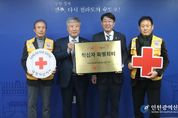 [인천광역신문] 박진 기자 | 전주시는 8일 전주시장실에서 기부 문화 확산과 적십자 회비 모금을 독려하기 위해 대한적십자사 전북특별자치도지사에 2026년도 적십자 특별회비를 전달했다. 이날 전달식에는 우범기 전주시장과 김홍식 회장 등 양 기관 관계자들이 참석했다. 이 자리에서 김홍식 대한적십자사 전북특별자치도지사 회장은 전주시에 특별회원증을 전달했다. 이날 전달된 특별회비를 포함한 회비 모금액은 각종 재해 이재민 구호 활동 및 저소득층 지원, 사회봉사 활동 등 다양한 인도주의 활동에 사용될 예정이다. 김홍식 대한적십자사 전북특별자치도지사 회장은 “전주시에서 전달해주신 적십자 특별회비는 재난과 위기 상황속에서 도움이 절실한 이웃들에게 큰 힘이 되고 있다”면서 “앞으로도 도움의 손길이 필요한 곳에 지원할 수 있도록 적십자 활동에 많은 관심 부탁드린다”고 밝혔다. 우범기 전주시장은 “적십자 특별회비는 단순한 성금을 넘어, 소외된 이웃을 돕기 위한 소중한 재원으로, 위기 상황에 놓인 이웃에게 희망과 용기를 전하는 소중한 나눔”이라며 “전주시도 나눔 문화 확산에 힘을 모아 모두가 더불어 사는 따