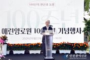 [인천광역신문] 관리자 기자 | 김제시는 용지면 소재 애린양로원(원장 한종욱)이 개원 100주년을 맞아 ‘100년의 헌신과 동행’이라는 주제로 22일 기념행사를 개최했다고 밝혔다. 이날 행사는 사회복지 관계자, 지역주민, 후원자 및 자원봉사자 등 약 300여 명이 참석한 가운데 애린양로원 야외공연장에서 진행됐다. 식전공연, 개회선언에 이어 사회복지법인 애린원 한규택 대표이사의 기념사를 시작으로 각계 인사의 축사가 이어졌다. 특히 애린양로원의 어르신 복지향상과 기관 발전에 기여한 단체 및 직원 등을 대상으로 전북특별자치도지사 표창, 김제시장 표창 등 총 8개의 수상이 이뤄져 기쁨의 영광을 누렸다. 한종욱 원장은 “오늘의 영광은 지난 100년간 함께해주신 모든분들의 헌신 덕분”이라며 “앞으로도 어르신들의 품격 있는 삶과 행복을 위해 한결같은 마음으로 노력하겠다”고 밝혔다. 정성주 김제시장은 “김제의 자랑스러운 애린양로원이 창립 100주년을 맞이하게 된 것을 진심으로 축하드린다.”며, “앞으로의 100년도 지역사회와 함께 숨 쉬며, 든든한 복지의 중심으로 우뚝 서기를 기대한다.”고 전했다. [뉴스출처