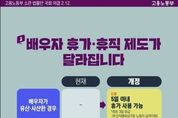 [인천광역신문] 관리자 기자 | 고용노동부 소관 법률안 국회 의결(2.12.) 1. 배우자 휴가·휴직 제도가 달라집니다. · 배우자가 유산·사산한 경우 (현재) - (개정) (신설) 5일 이내 휴가 사용 가능 *최초 3일 유급(우선지원대상기업 노동자 급여지원) · 배우자의 출산이 임박한 경우 (현재) 출산 후 120일 이내 출산휴가 사용 가능 (개정) 출산 50일 전부터 출산 후 120일 이내 출산휴가 사용 가능 · 배우자가 유산·조산 위험이 있는 경우 (현재) 출산 후 육아휴직 사용가능 (개정) 임신 중 육아휴직 사용 가능 *육아휴직 분할 사용 횟수 미차감 2. 청년의 연령 범위를 현재 넓힙니다. (현재) 15세 이상~29세 이하 (개정 후) 15세 이상~34세 이하 → 청년층의 노동시장 진입을 적극 지원 *공포 6개월 후 시행 3. 공무직위원회가 설치됩니다. 공공부문 공무직·기간제·파견 노동자 등의 - 불합리한 차별 해소 - 합리적인 인사기준 논의 *공포 6개월 후 시행 4. 중소기업 퇴직연금 기금 가입 범위를 확대합니다. (현재) 30명 이하 → ('26년 7월 1일)