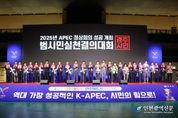 [인천광역신문] 관리자 기자 | 경주시가 2025년 APEC 정상회의 개막을 한 달 앞두고 시민의 힘을 하나로 모아 성공개최 의지를 다졌다. 시는 30일 경주실내체육관에서 ‘2025년 APEC 정상회의 성공개최 범시민실천결의대회’를 성황리에 개최했다고 밝혔다. 이번 행사에는 APEC 범시도민지원협의회(공동회장 박몽룡·이상걸) 소속 회원을 비롯해 유관기관, 시민단체, 자원봉사자 등 경주시민 3천여 명이 참석해 시민과 함께하는 APEC의 진정한 의미를 되새겼다. 특히 주낙영 경주시장을 비롯해 김석기 국회 외교통일위원장, 이동협 경주시의장, 최병준 경북도의회 부의장을 비롯해 시·도의원 전원이 참석해 시민과 함께 손님맞이 실천 결의를 다지고 성공 개최를 향한 열기를 더했다. 행사장 내부에는 시민단체들이 자체 제작한 손님맞이 실천 결의 현수막이 곳곳에 걸려 있어, APEC 성공개최를 향한 시민들의 뜨거운 참여 의지를 생생하게 보여주었다. 본행사에 앞서 참석자들은 ‘APEC 시민 10대 실천과제’를 함께 되새기며, 모든 시민이 APEC의 주인으로서 행동할 때 성숙한 시민의식과 지속가능한 경주를 만