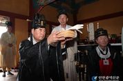 [인천광역신문] 관리자 기자 | 천년 역사의 대설위 상주향교와 함창향교에서는 2025년(을사) 9월 25일(음 8월 4일) 공기 2576년 추계(秋季) 석전대제(釋奠大祭)를 봉행했다. 이날 석전대제에는 지역의 유림 등 200여 명이 참석한 가운데 함창향교에서는 초헌관에 강영석 상주시장, 아헌관에 김종현 상주교육지원청장, 종헌관에 김익상 시의원, 상주향교에서는 곽희상 사무국장의 개좌 선언에 이어 초헌관에 김상동 유림, 아헌관에 황의종 유림, 종헌관에 박창수 유림이 각각 수고했다. 석전대제는 1986년 국가 중요 무형유산 제85호로 지정된 의식행사로 전국 234개 향교에서 매년 음력 2월과 8월의 상정일(上丁日)에 공자를 모시는 사당인 문묘에서 옛 성현들의 학덕을 추모하며 지내고 있다. 특히 상주향교에서는 상주향교의 발전을 위해 헌신적으로 봉사해 온 김건수(金健洙) 재무수석장의에 대하여 제7회 상주향교 석전 회중(會中)으로 표창을 했다. 부상은 경상북도 무형유산 제22호 김선익 명장께서 직접 제작한 향로를 수여했다. 향로 표면에는 추계석전 시상내역에 대해 간단하게 글씨를 새겼으며, 시상 표창장은 족자로 제작했는데,