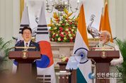 [인천광역신문] 최예준 기자 | 인도를 국빈 방문 중인 이재명 대통령은 20일(현지시간) 나렌드라 모디 총리와 정상회담을 갖고 "기존 경제 협력을 더욱 고도화하는 한편, 조선, 금융, 인공지능(AI), 국방·방산을 비롯한 전략 산업 분야에서의 협력을 확대하고, 문화와 인적 교류도 한층 강화해 나가기로 했다"고 말했다. 이 대통령은 이날 오후 인도 뉴델리에서 모디 총리와의 정상회담 후 공동 언론발표를 통해 "불확실성의 시대 속에서 대한민국과 인도가 상호 성장과 혁신을 촉진하는 최적의 전방위적 협력 파트너가 될 수 있다는 데 서로 공감했다"며 이 같이 밝혔다. 이 대통령은 "한국과 인도는 1973년 수교 이래 2010년 한-인도 '포괄적 경제 동반자 협정' 체결과 2015년 '특별 전략적 동반자 관계' 격상을 거치며 괄목할 만한 발전을 이뤄왔다"고 평가한 뒤 "양국은 '특별 전략적 동반자 관계'의 새로운 10년을 맞이하고 있다"고 말했다. 이 대통령은 정상회담 성과에 대해 "양국 간 경제협력의 틀을 고도화해 동반성장의 새로운 동력을 창출하기로 했다"고 소개했다. 이어 "양국 간 첫 번째 장관급 경제