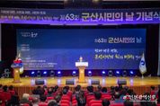 [인천광역신문] 관리자 기자 | 군산시가 26일 시청 대강당에서 제63회 군산시민의 날 기념행사를 개최했다. 이번 행사는 ‘함께 만든 변화, 군산시민의 힘으로 미래를 열다’라는 주제로 군산시민으로서의 자긍심을 고취하고 군산시민의 화합과 단합을 도모하기 위해 마련됐다. 제63회 군산시민의 날 기념행사는 1부 기념식, 2부 시민과 함께하는 타운홀미팅 그리고 부대행사로 OMG(Oh My Gunsan) 정책홍보부스 등 시민과 함께 만들어가는 소통의 장으로 꾸며졌다. 1부 기념행사는 팝페라 가수팀 펜타보체가 시민들과 함께 ‘군산시민의 노래’를 부르며 환상적인 하모니를 선사하며 시작됐다. 이어 시민 인터뷰 형식으로 이루어진 군산의 과거와 현재, 그리고 변화하는 미래를 담은 기념영상'함께 만든 변화, 군산시민의 힘으로 미래를 열다'가 상영되어 행사장의 분위기를 고조시켰다. 영상이 끝난 뒤에는 군산시민헌장 낭독, 군산시민의 장과 모범시민상 시상식, 기념사, 군산시민의 노래 제창 순으로 진행됐다. 2부 시민과 함께하는 타운홀미팅은 시장과 시민의 열띤 즉석 문답이 이어졌다. 지역