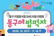 [인천광역신문] 관리자 기자 | 대구 동구청은 지정음식점 홍보와 외식산업 활성화를 위해 20일부터 11월 16일까지 4주간 ‘동구 지정음식점 홍보 SNS 인증샷 & 리뷰 이벤트’를 실시한다. 전 국민 누구나 참여 할 수 있는 이번 이벤트는 대구 동구맛집 홈페이지에서 이벤트 참여 식당을 확인 후 이용 한 뒤 리뷰를 등록하고 인증하면 된다. 리뷰 등록은 네이버 MY 플레이스 영수증 리뷰 또는 인스타그램에 음식사진과 함께 해시태그 3종(#업소명#대구동구지정음식점#동구맛집맛있어) 게시 2가지 방법으로 할 수 있으며, 이벤트 참여는 대구 동구맛집 홈페이지에서 해당 리뷰를 인증하면 된다. 참여자 중 추첨을 통해 매주 화요일 25명씩 총 100명의 당첨자를 선정해 ‘동구 맛집 명성을 담은 밀키트’ 10선 중 1개와 모바일 커피쿠폰(스타벅스)을 경품으로 증정한다. 윤석준 동구청장은 “이번 이벤트를 통해 동구 관내 다양한 지정음식점을 홍보하여 많은 분들이 동구의 맛을 즐기고 이를 통해 우리 지역 먹거리의 우수성을 널리 알리고 지역경제 활성화에 도움이 되길 바란다”고 말했다. [뉴스출처 : 대구시동구청]