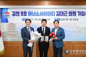 [인천광역신문] 관리자 기자 | 김천시는 지난 24일, 김천시청 접견실에서 김대근농약사 김대근 대표의 ‘김천 9호(경북 189호) 아너 소사이어티 신규 회원 가입식’을 개최했다고 밝혔다. ‘아너 소사이어티(Honor Society)’는 사회복지공동모금회가 운영하는 고액 기부자 클럽으로, 1억 원 이상을 일시 또는 5년 이내 분할 기부하는 개인에게 부여되는 명예로운 회원 자격이다. 김대근 대표는 지난 2022년 이후 김천에서 3년 만에 새롭게 탄생한 신규 회원으로, 이번 가입으로 김천시의 아너 소사이어티 회원은 총 9명으로 늘었다. 이날 가입식에는 배낙호 김천시장을 비롯해 전우헌 경북사회복지공동모금회장, 장재호 김천 사랑의열매 나눔봉사단장 등이 참석해 김대근 대표에게 진심 어린 축하와 응원의 메시지를 전했다. 김천 출신의 젊은 기업인 김대근 대표는 평소에도 어려운 이웃에 대한 관심과 애정으로 지속적인 사회공헌 활동에 참여해 왔다. 그는 부친과 함께 ‘김부자종합농약사’를 운영하며 2013년부터 2021년까지 매월 정기 기부에 참여했으며, 최근 새로 문을 연 ‘김대근농약사’로도 그 나눔을 이