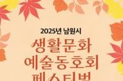 [인천광역신문] 관리자 기자 | 남원시가 후원하는 2025 남원시 생활문화예술동호회 페스티벌이 9월 28일에 남원 사랑의 광장에서 개최한다. 이 행사는 (사)남원시 생활문화예술동호회 네트워크에서 주관하는 축제로, 지역 예술인 및 생활 문화예술 동호인 500여 명과 남원 시민이 함께하는 남원의 생활 문화예술 축제이다. 오후 1시부터 오후 6시까지 남원 사랑의 광장 일원에서 진행되는 이번 축제는 18개 동호회의 음악·무용·농악 등 다양한 무대 공연이 펼쳐지고, 나만의 예술적 감각을 담은 생활용품을 제작해 볼 수 있는 전시 및 체험 부스가 마련됐다. 이기영 생활문화예술동호회 네트워크 이사장은 “이번 축제를 통해 남원 시민들이 함께 즐길 수 있는 다양한 프로그램이 마련됐다.”라며, “앞으로의 활동으로 시민 여러분이 즐거운 문화예술 활동에 참여할 수 있도록 노력하겠다.”라고 밝혔다. 최경식 남원시장은 “이번 행사를 통해 생활 문화예술인의 자긍심을 높이고, 시민 여러분이 생활 문화예술을 접할 수 있는 장이 될 것이다.”라며, “시민의 화합과 생활 문화예술 발전의 계기가 될 것이다.”라고 말했다. [뉴스출처