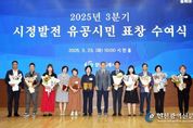 [인천광역신문] 관리자 기자 | 창원특례시는 23일 오전 10시 시청 시민홀에서 ‘2025년도 3분기 시정발전 유공시민 표창 수여식’을 개최했다. 이날 수여식에서는 지역사회와 시정 발전을 위해 묵묵히 봉사해 온 시민 100명이 수상의 영예를 안았다. 특히, 마산소방서 이보검 소방사와 경남경찰청 범죄예방대응과 백정한 경감은 소중한 시민의 생명을 구한 유공 의인으로 인정받아 표창패를 수여받으며 참석자들의 큰 박수를 받았다 이보검 소방사는 퇴근길 마창대교 난간에서 극단적 선택을 하려던 시민을 설득해 구조했으며, 백정한 경감은 실종 신고된 치매 어르신을 적극 수색해 무사히 구조하는 등 시민 안전을 지켰다. 장금용 창원특례시장 권한대행은 “지역과 이웃을 위해 헌신하신 수상자 여러분께 진심으로 감사드린다”며, “창원시는 앞으로도 묵묵히 봉사하는 분들이 존중받고 격려받을 수 있도록 적극 지원하겠다”고 말했다. [뉴스출처 : 경상남도 창원시]