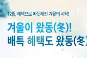 [인천광역신문] 관리자 기자 | 경기도와 경기도주식회사가 공동 운영하는 경기도 공공배달앱 배달특급이 겨울을 맞아 12월 한 달간 ‘겨울이왔동(冬)’ 소비자 할인 프로모션을 진행한다. ‘겨울이왔동(冬)’ 소비자 할인 이벤트는 ‘통 큰 세일’ 프로모션 종료 등으로 아쉬움이 남는 소비자들의 편익을 증대하기 위해 마련했다. 배달 특급 전체 회원, 전체 서비스 지역을 대상으로 1만2천원 주문에 사용가능한 3천원 할인 쿠폰을 예산 소진시까지 1일 1인 1회 지급한다. 한편 배달특급의 모든 이벤트는 해당 상단 배너 기능을 통해 확인 가능하며, 지역에 따라 할인 조건과 금액이 달라질 수 있어 사전 확인이 필요하다. [뉴스출처 : 경기도청]