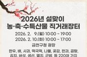 [인천광역신문] 관리자 기자 | 금천구는 설 명절을 앞두고 9일부터 10일까지 이틀간 금천구청 광장에서 ‘2026년 설맞이 농·축·수특산물 직거래장터’를 연다고 밝혔다. 구는 주민들에게는 합리적인 가격으로 명절 먹거리를 준비할 수 있도록 기회를 제공하고, 참여 농가에는 안정적인 판로를 제공하기 위해 이번 직거래장터를 마련했다고 설명했다. 금천구 친선도시인 △경남 남해군 △전남 고흥군 △강원 횡성군 △충남 청양군을 비롯해, 동주민센터 도농교류지인 △강원 철원군 △충북 충주시 △충남 공주시 △충남 서산시 △전남 곡성군 △인천 옹진군 등 전국 10개 지방자치단체에서 추천한 28개 농가가 이번 직거래장터에 참여한다. 참여 농가는 한우, 과일(사과, 배 등), 떡국떡, 한과, 곰탕, 김치, 장아찌, 각종 나물(고사리, 취나물 등), 표고버섯, ,막걸리, 고춧가루, 오란다, 멸치 등 220여 가지 다양한 농·축·수특산물을 판매한다. 구는 시중가 대비 최대 40% 할인된 가격으로 구매할 수 있다고 덧붙였다. 결제는 현금 및 카드로 가능하며, 일부 품목에 한해 온누리상품권도 사용할 수 있다. &nbs