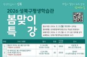 [인천광역신문] 관리자 기자 | 서울 성북구가 구민의 평생학습 참여를 확대하고 일상 속 평생학습 문화를 확산하기 위해 ‘2026 성북구평생학습관 봄맞이 특강’을 운영한다. 이번 특강은 문화예술, 인문교양, 생활경제 등 다양한 분야의 프로그램과 함께 환경·인권 등 사회적 가치를 주제로 한 시민교육 강좌로 구성됐다. 취미 중심 강좌를 넘어 구민이 일상에서 사회적 이슈를 이해하고 실천으로 이어갈 수 있도록 기획한 점이 특징이다. 문화예술 분야에서는 붉은 말 키링, 야생화 자수 카드 파우치, 아로마 캔들·왁스타블렛, 우리술을 말하다(수제 막걸리 빚기) 등 체험형 강좌를 운영한다. 인문교양 분야에서는 기상청 통보관에게 듣는 날씨와 기후 이야기, 맥주로 떠나는 세계 인문학 여행, 정원의 위로 등 생활과 연계된 주제를 다룬다. 시민교육 분야에서는 기후위기 시대 생태미식의 중요성, 친환경 라이프 실천(천연 주방세제 만들기) 강좌를 통해 기후위기 대응과 환경 보호에 대한 시민 인식을 높인다. ‘도슨트 특강: 고난을 이겨낸 예술가들’은 장애에 대한 이해와 공감을 확산하기 위한 장애인식개선교육으로 기획됐다. 이와 함께 절세의 기술