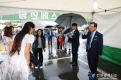 [인천광역신문] 관리자 기자 | 전북특별자치도는 9월 12일 고창군에서 열린 ‘제62회 전북특별자치도민 체육대회’ 개회식 현장에서 전주 하계올림픽 유치 기원 홍보부스를 운영해 큰 호응을 얻었다고 밝혔다. 이번 홍보부스 운영은 도민체전에 참가한 14개 시‧군 39개 종목 임원 선수단과 관람객 등을 대상으로 진행됐으며, 올림픽 유치에 대한 도민의 관심과 지지 기반을 확대하고, 전북의 스포츠 역량과 국제행사 개최 가능성을 널리 알리는 계기가 됐다. 홍보부스는 고창군 공설운동장 내 종합 안내 구역에 설치되어, ▲올림픽 유치 소개 ▲홍보물 배포 ▲참여형 이벤트 등 다양한 콘텐츠로 운영됐다. 특히 개회식 전에는 올림픽 홍보영상을 송출하고, 경기장 안팎에 유치 기원 홍보 현수막을 게첨해 현장 분위기를 고조시켰다. 또한 ‘올림픽 홍보 서포터즈 가입 이벤트’도 진행해 도민의 자발적인 참여를 이끌어냈다. 특히 개회식에서는 김관영 전북특별자치도지사는 대한체육회 유승민회장과 함께 선수단 입장을 기다리는 도민들 사이에 합류해 올림픽 유치 홍보 퍼포먼스를 펄쳤다. 갑작스러운 깜짝 등장에 현장 관심이 집중되면서 유치 열기는 한층 뜨겁게