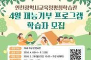 [인천광역신문] 관리자 기자 | 인천광역시교육청평생학습관은 오는 3월 23일부터 시민 강사의 전문 지식과 경험을 지역 주민과 공유하는 ‘4월 재능기부 프로그램’ 학습자를 모집한다. 이번 프로그램은 시민이 직접 강사로 나서 지역사회와 함께 전문성을 나누는 참여형 평생학습 과정으로, 4월 운영 강좌는 ‘쏙쏙 클래식’, ‘치매예방 힐링 퍼즐’, ‘한중 지명에 얽힌 역사문화와 지혜’, ‘요들송 배우기’ 등 4개 과정을 마련했다. 강좌는 4월 8일부터 운영되며, 수강 신청은 23일 오전 10시부터 평생학습관 누리집에서 선착순 진행된다. 자세한 사항은 누리집 공지사항을 확인하거나 평생교육부로 문의하면 된다. [뉴스출처 : 인천광역시교육청]